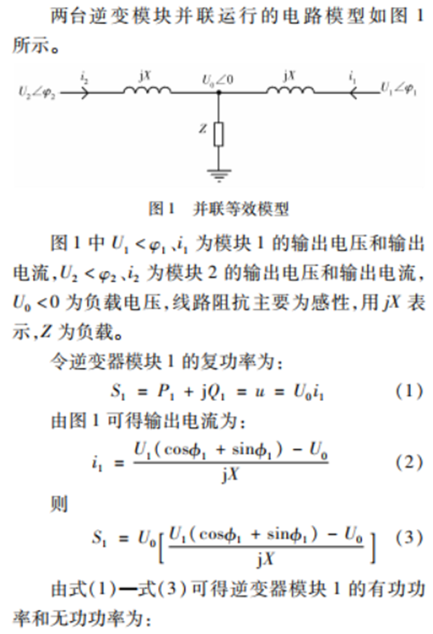 下垂控制是一种电压型控制,如果忽略下垂控制对于输出电压幅值和相位的小量调节,可以从电压源并联的角度来理解基于下垂控制的逆变器并联系统:在稳态时,其输出功率严格按照系统阻抗进行分配;在暂态时,为保证并联系统的稳定可靠,要求各并联单元有一定的阻抗支撑。因此,阻抗在逆变器并联系统的均流控制和功率分配控制中,扮演着极其关键的角色。