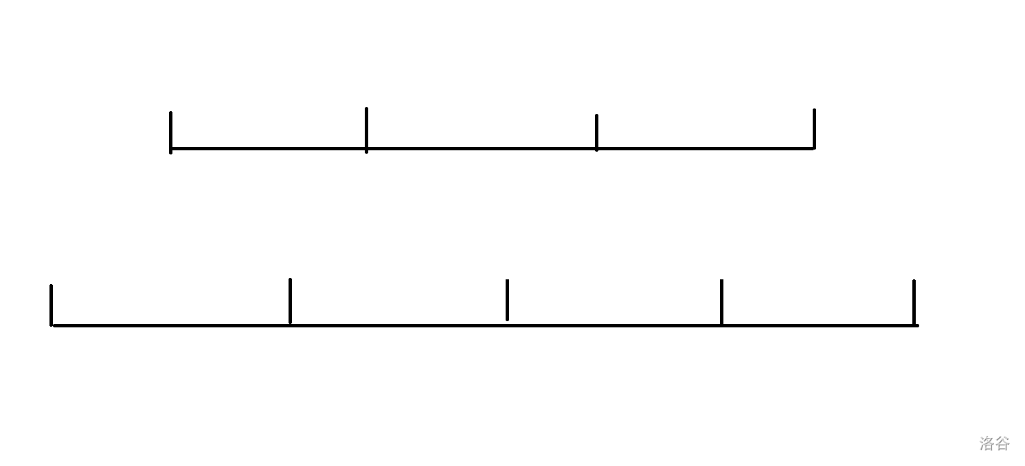 其次我们考虑每一个 \(R\) 段,我们可以先把 \(n=3,4\) 的情况画下来,\(n\) 是开头这个段的长度:
