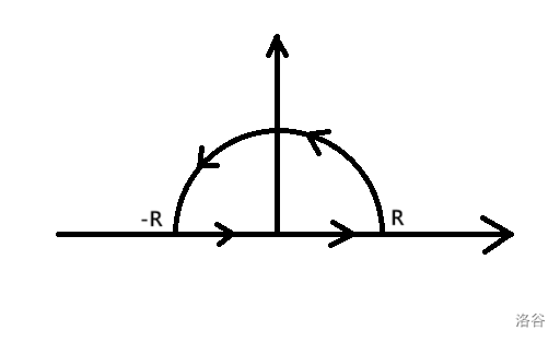 先构造闭合路径表示一个半径为 \(R>b\) 半圆 \(\gamma\),像这样: