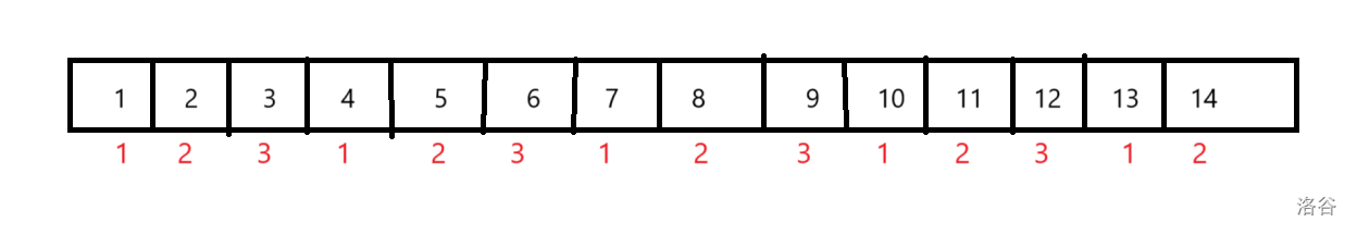 - 若 \(x \le \sqrt n\),注意到 \(y \le x\),那么整个序列中所有的位置在 \(x\) 确定时都可以唯一确定 \(y\) 的位置。也就是说在 \(y\) 不同而 \(x\) 相同时,每个修改操作 \((x,y)\) 影响的位置没有交集,且这些并集就是原序列。所以可以维护 \(k=x\) 时对于 \(y\) 位置的前缀和、后缀和,不修改原序列和大块。复杂度也是 \(\sqrt n\) 的。(注意这里不能树状数组,因为后面查询需要 \(O(1)\) 查询)。