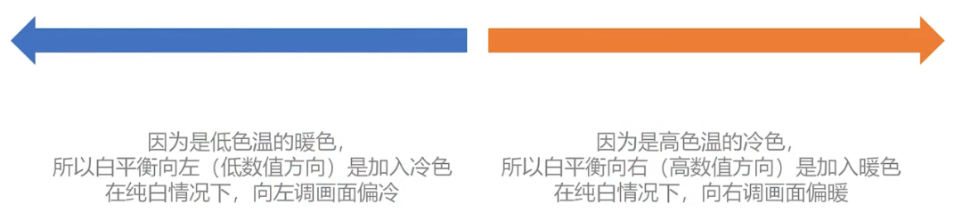 低数值白平衡是加入冷色;高数值白平衡是加入暖色