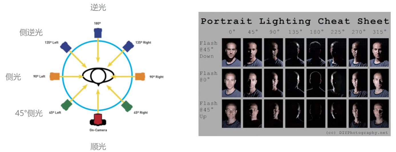 柔光和硬光:看人物面部阴影和亮部的分割线,如果分割均匀自然过渡,则是柔光;如果分割线很硬,则是硬光
