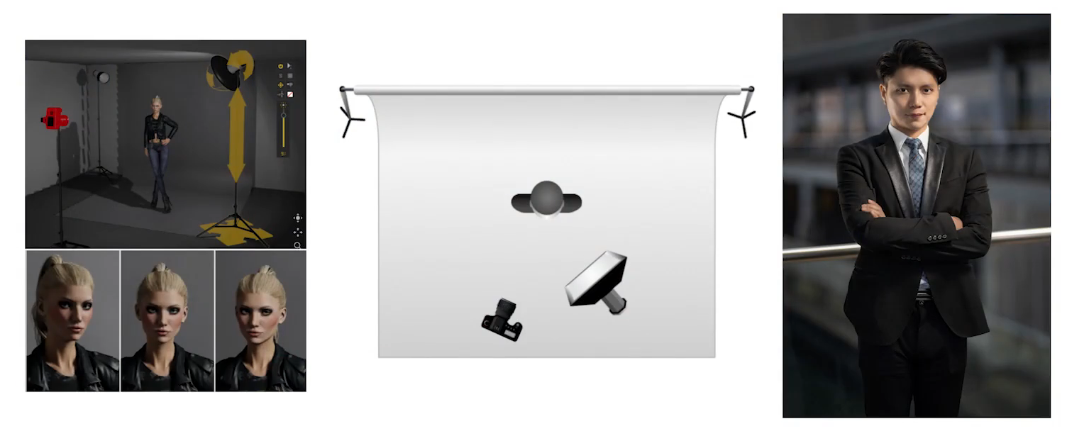 - 伦勃朗光:一侧高位斜下45度打光,人物脸部一侧会形成倒三角阴影,多用于男性。