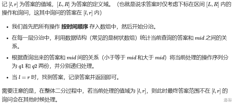 那一天还讲了\(CDQ\)分治+整体二分,我连二分答案都写不全还学什么整体二分……浅浅粘一下介绍