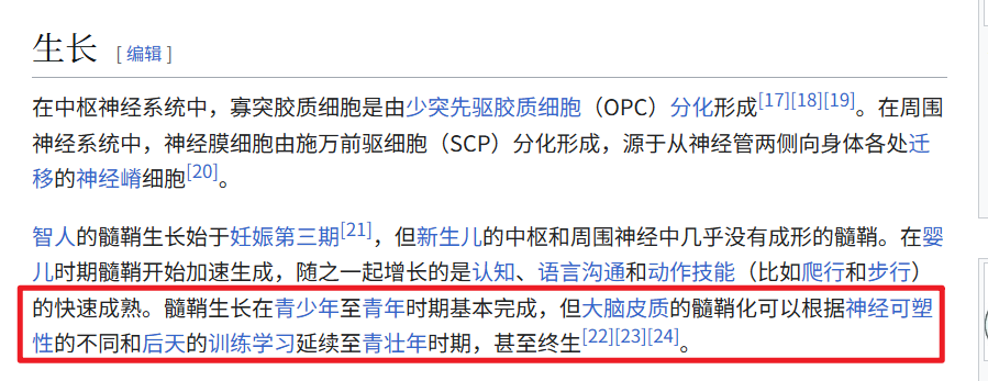 但是他可以通过后天练习形成,这里截取自维基百科,后天练习也可以生成髓鞘,达到控制自己大脑的效果,也就是俗称的——变聪明。