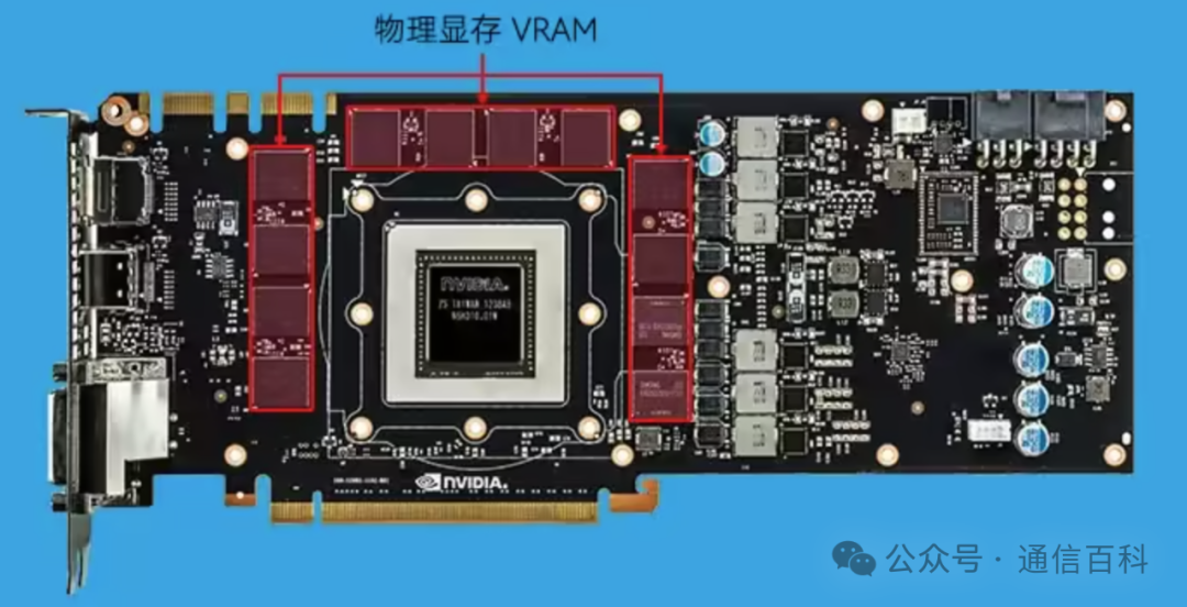 专为GPU设计的高速内存被称为VRAM(视频随机存储器,Video RAM),而当前在高端AI和计算领域占据主流地位的就是HBM。一张典型的显卡(或AI加速卡)的核心组件就是GPU芯片和与其紧密相连的VRAM模块(通常由多颗HBM堆栈组成)。