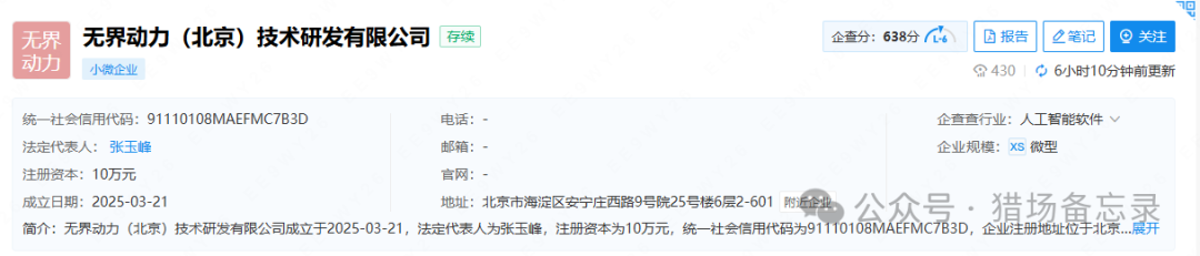 [无界动力]于2025年3月北京注册成立,公司目前相关消息比较少,公共招聘平台还没有看到公司岗位;据媒体消息,目前团队已初步成型,核心技术高管曾在滴滴担任要职。